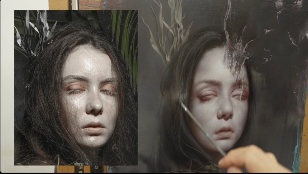 前後關係就來自於胸前的植物跟頭髮 而頭髮後面又有皮膚,這我們會在該課程中解釋如何策略性的佈局處理這樣複雜的關係。 繪畫擁有無限多的可能,分享我的創作路徑並非讓你成為我,而是透過傳遞我的技巧,技巧本身蘊含的思維邏輯,思維邏輯的根源形成完整的體系,我們透過課程分析出一條繪畫的道路,而透過這條道路,最終的目標是讓你成為你自己。